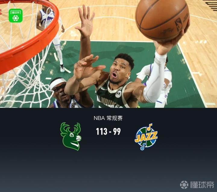 密尔沃基雄鹿字母哥27分9板8助,库兹马15分2板5助;犹他爵士基扬特-乔治22分2板4助,森萨博17分5板2助。