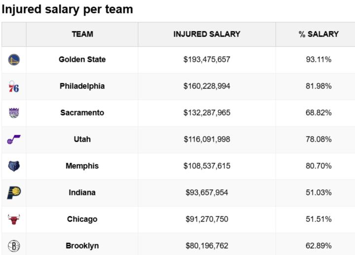 扫描下载懂球帝首页>动态> 惨不忍睹,勇士伤员薪水高达1.93亿,占全队总薪水的93%