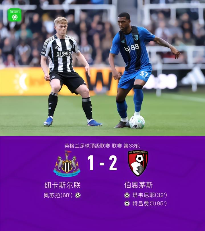 扫描下载懂球帝首页>动态> 纽卡1-2伯恩茅斯,埃万尼尔松乌龙回传+头球助攻,特吕费尔绝杀