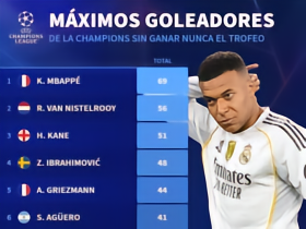 欧冠从未夺冠球员射手榜:姆巴佩69球第1,凯恩51球第3