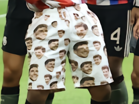 战胜弗赖堡后,格纳布里穿了条印满格雷茨卡头像的短裤庆祝