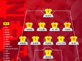 邵佳一国足首场正式比赛阵容:阵型4-2-3-1,张玉宁担任队长