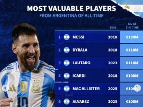 德转阿根廷球员历史身价榜:梅西1.8亿第1,迪巴拉、劳塔罗第2