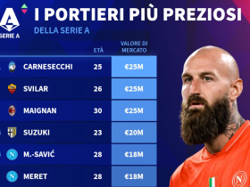 意甲门将身价前10:迈尼昂等3人2500万第1,铃木彩艳2000万第4