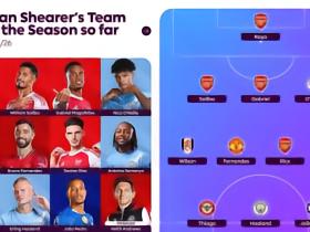 希勒评英超赛季至今最佳阵容:阿森纳4人,曼城3人,B费入选