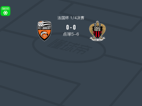 点球大战尼斯6-5洛里昂,若纳唐-克洛斯点球罚进,巴莫-梅特失点
