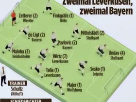 图片报德甲第20轮最佳阵容:维尔茨、德利赫特和帕夫在列