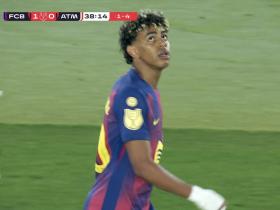 半场:巴萨2-0马竞,亚马尔助攻贝尔纳尔破门,拉菲尼亚点射