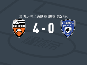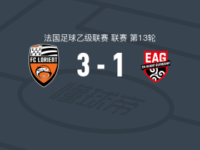 洛里昂3-1甘冈,苏马诺点射破门,卡采里斯建功