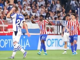 半场:马竞1-2皇社,卢克曼破门,奥亚萨瓦尔点射