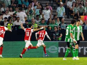 大逆转!布拉加两回合5-3淘汰贝蒂斯,安东尼破门,奥尔塔传射