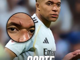 ESPN晒姆巴佩伤口图,眼眶上方深深的伤口清晰可见