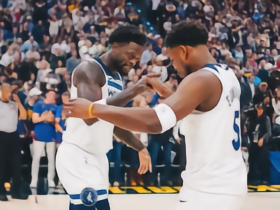 一条腿轰30分!爱德华兹真的拼了,森林狼追平比分!