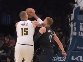 约基奇用肘部将迪文琴佐击倒,裁判回看后改判后者防守犯规