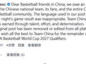 不是中国区限定,FIBA道歉同样出现在措辞不当的帖子的评论区