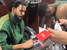 有求必应,J.Cole在更衣室里给队友疯狂签名