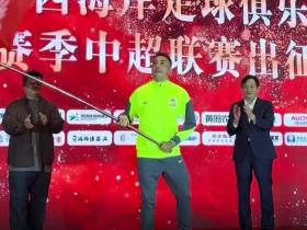 青岛西海岸举行出征仪式,新任队长戴维森代表全队发言