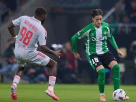 半场战报:贝蒂斯2-0里昂,安东尼吊射破门,阿布德建功
