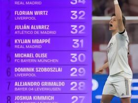 本赛季欧冠创造机会榜:居莱尔居首,维尔茨、小蜘蛛并列第二