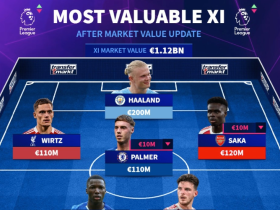 德转更新后英超最贵11人阵容:哈兰德2亿欧领衔,6人身价过亿