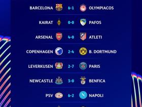 本赛季欧冠联赛阶段第3轮共产生71粒进球,创单轮进球纪录