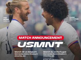 官方:美国明年3月与比利时、葡萄牙踢友谊赛,6月踢德国