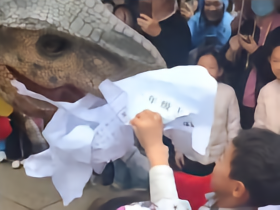 “苏超”揭幕战场外,小球迷向常州恐龙投喂南通试卷